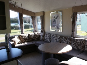 With a lounge, dining area, kitchen, bathroom with shower, washbasin & toilets. There is a Double bedroom, a Twin bedroom and a Sofa bed in the lounge in all caravans (except the Willerby).